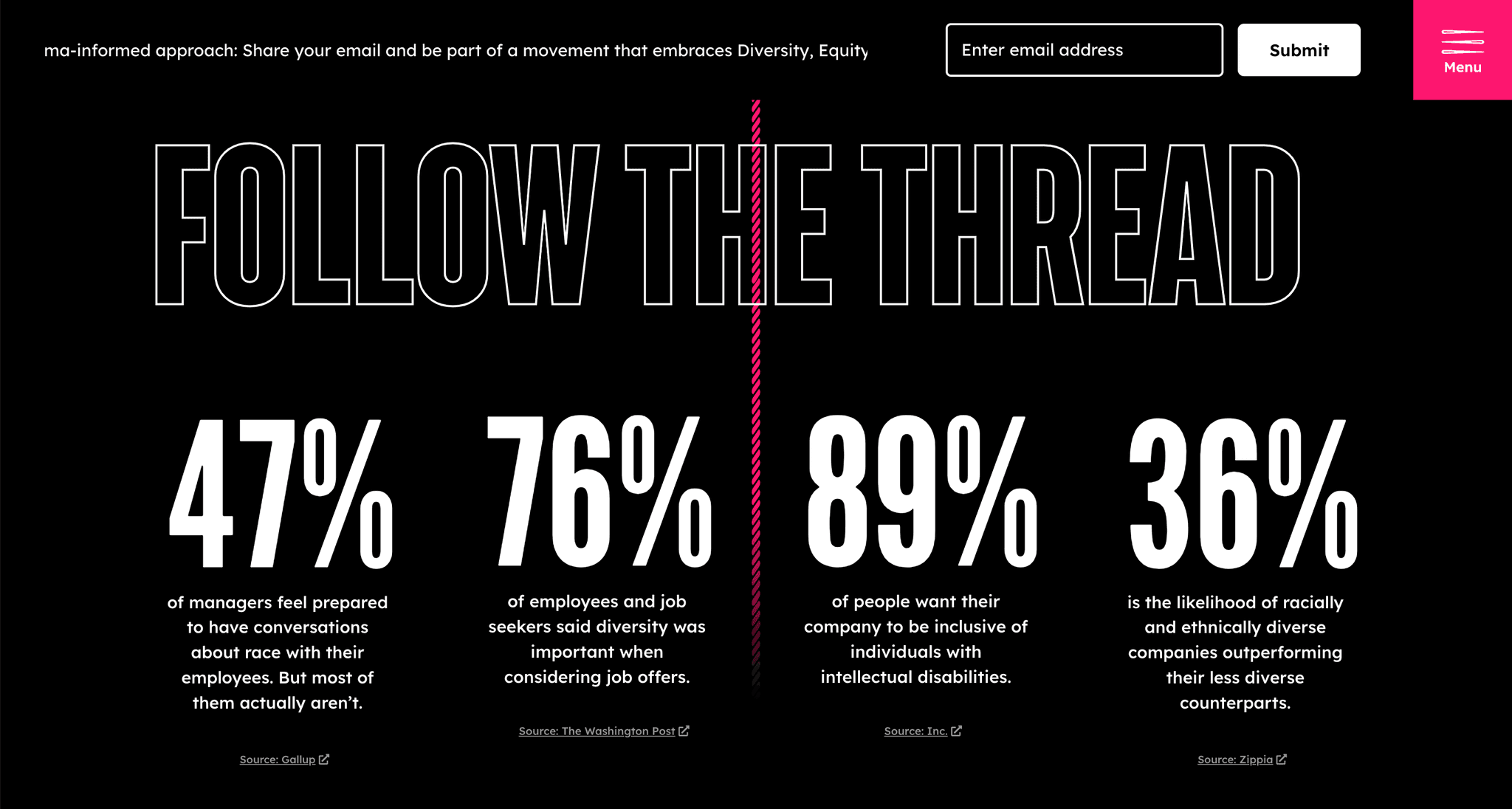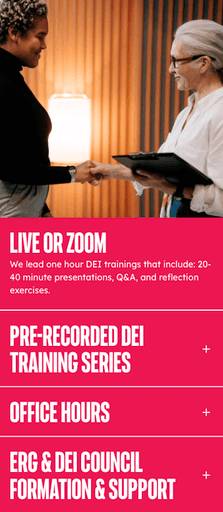 DEI meets reality—bold imagery paired with selective color to highlight key areas and call-to-actions.